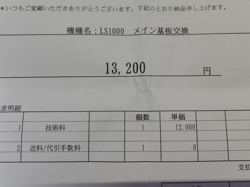 修理料金は13,200円でした。