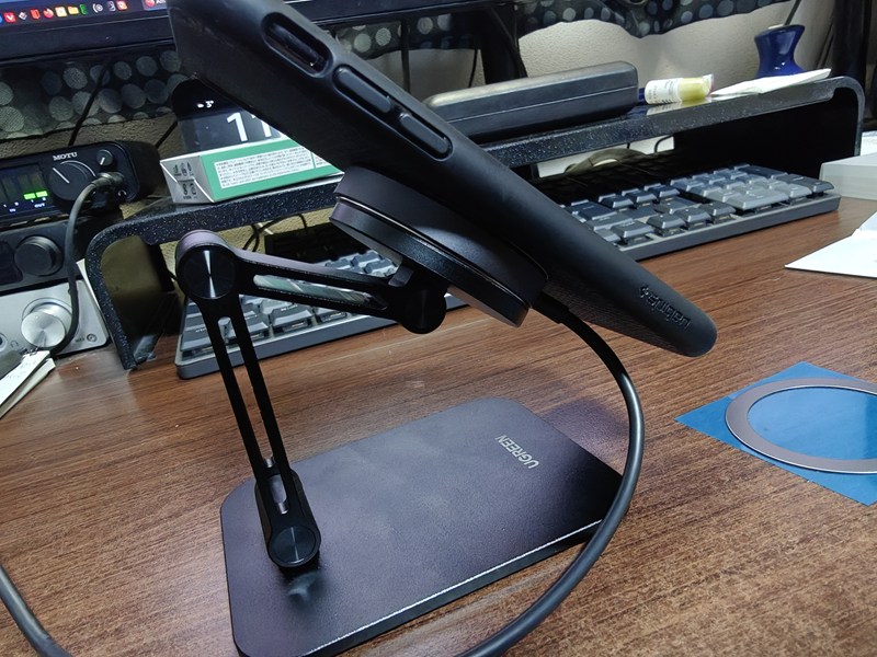 UGREEN スマホスタンドに付属していたリングを充電器の裏側に貼り付けました。