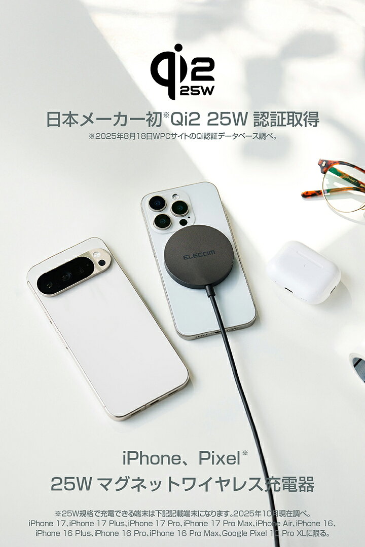 ELECOMだし、なんでも日本メーカー初 Qi2 25W認証取得らしいので信頼できるかなってことで。
