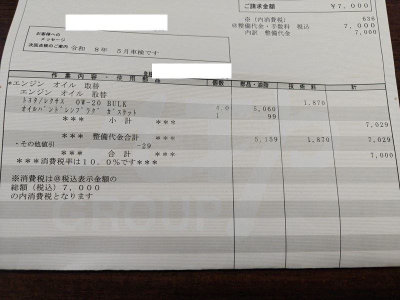 車検の準備として一ヶ月前にディーラーでオイル交換をしました。